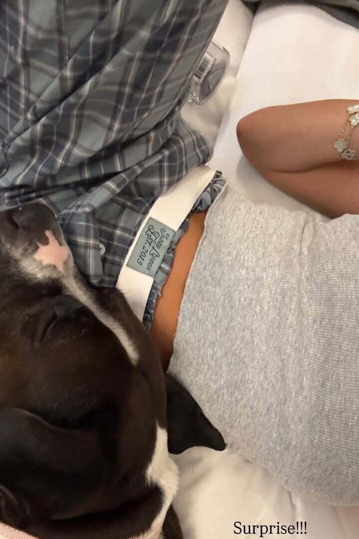 Alix Earle keeps it cozy and chic in a pair of blue plaid Jaded London trousers paired with a classic grey top. She accents the relaxed lounge look with an iconic Van Cleef & Arpels Alhambra bracelet for a touch of luxury.