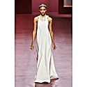 White Dior Halter Gown with Gold Lace Collar