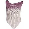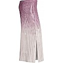 Elsa Hosk looks effortlessly chic in a purple and white ombre crochet set from the I.Am.Gia Gia Resort collection. This summer-ready ensemble features a high-slit maxi skirt and an asymmetrical knit top, perfect for an elevated vacation look. She completes the editorial style with chunky bangles and silver strappy sandals.
