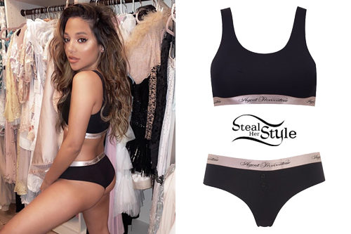 Gabi DeMartino looks effortlessly chic in this matching black loungewear set from Agent Provocateur. The ensemble features a sporty Clea bralette paired with coordinating Clea boxer briefs, both accented with a signature logo elastic waistband.
