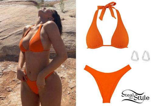 Orange Halter Bikini and Silver Hoop Earrings