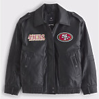 Abercrombie & Fitch x Olivia Culpo San Francisco 49Ers Vegan Leather Bomber Jacket