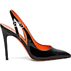 Santoni Black Patent Leather High-Heel Slingback
